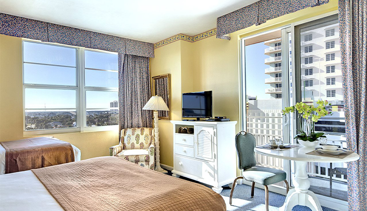 Car Parking: Parking is limited to one vehicle per suite with a height limit of 7’4″. The resort is unable to accommodate the storage of boats, RVs, and trailers. A valid parking pass is required to be displayed at all times while in the garage. The City of Daytona offers additional parking across the street from the resort for a nominal fee. Please contact the Front Desk with questions.