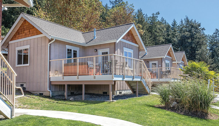 Find yourself on a forested island. How about you hop onto a whale-watching boat at the marina? Chill in your personal hot tub, head to the colorful boutiques, meander Moran State Park’s scenic trails and freshwater lakes? Cook up the Dungeness crab you caught for dinner, or wind down at a waterfront restaurant with local wine or craft beers? Relaxation and reflection are easy in this quiet bit of Orcas Island, an artsy community off the northwest Washington coast.