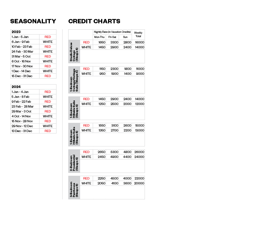 Resort Credit Calculator