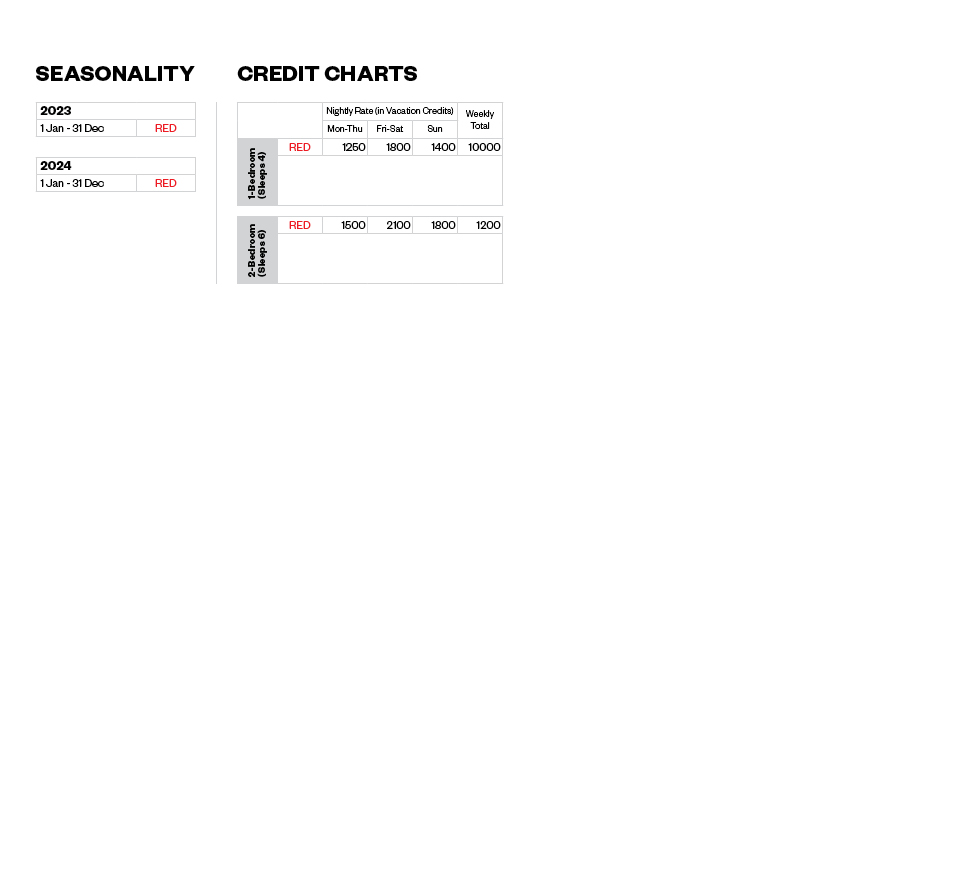 - Multiple reservations can be made by each Owner to build a stay of multiples of 7 nights, however a housekeeping fee applies to each 7-night booking and a room move may be required.