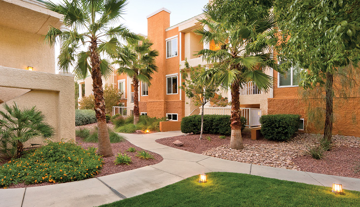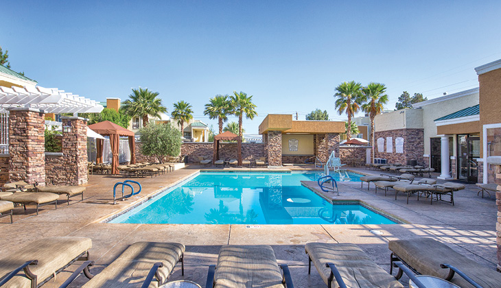 WorldMark Tropicana Avenue offers 171 one- and two-bedroom units scattered amongst 20 two- and three-story buildings on 8.8 acres. It offers easy access to “The Strip,” while set in a quiet neighborhood 2.5 miles away.