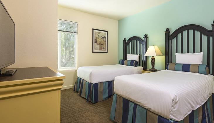 • 2 Bedroom Deluxe Twin (units are on 2nd or 3rd floor and require one to two flight of stairs for entry)