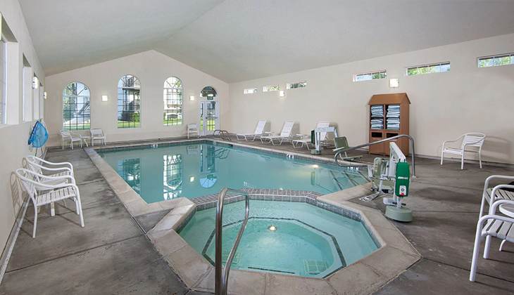 Indoor pool is open year-round. Children in diapers must wear waterproof diapers designed for swimming. There are no lifeguards on duty. Please refer to posted pool signage for more specific information.