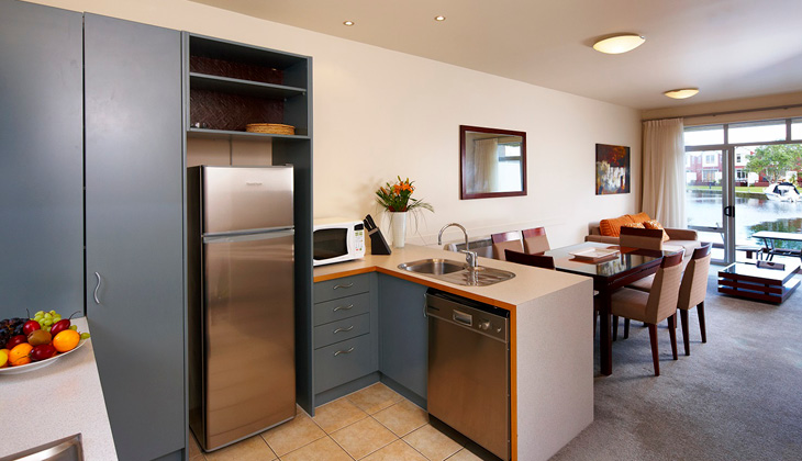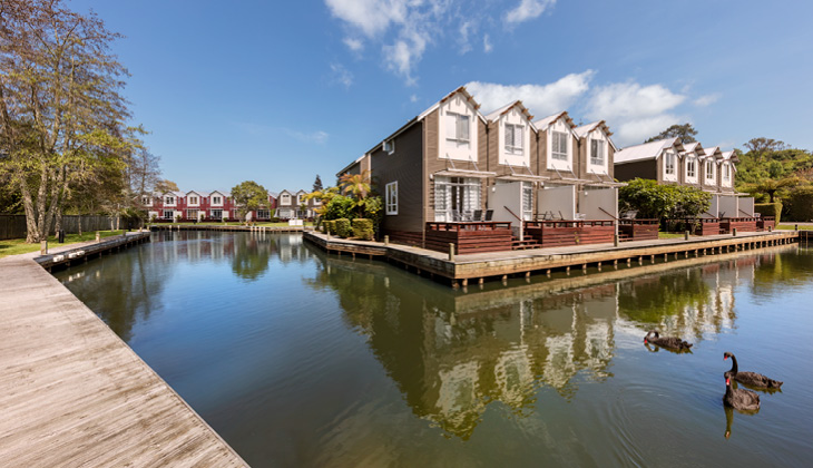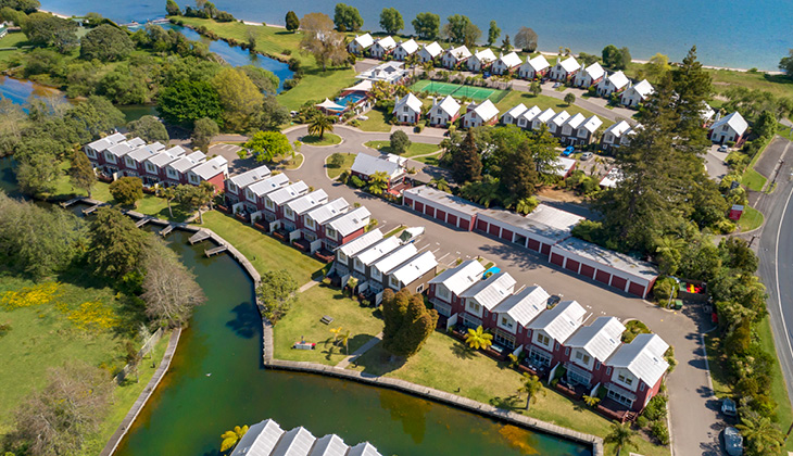 Right on the water’s edge with panoramic views over Lake Rotorua and the Oahu Channel, the resort has an outdoor swimming pool, heated spa, gym and tennis court. Locals say if you throw a line into the water, you are guaranteed (well almost) to catch a fish.