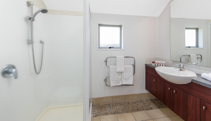 - All apartments are 2 storey with an internal staircase and bedrooms located upstairs. However, the special needs apartment has an entry ramp and bathroom with two bedrooms (one with a Queen bed, one with two Single beds) are located downstairs. A limited number of child safety gates are available at the resort. Please request at time of booking. These are provided free of charge and are subject to availability.